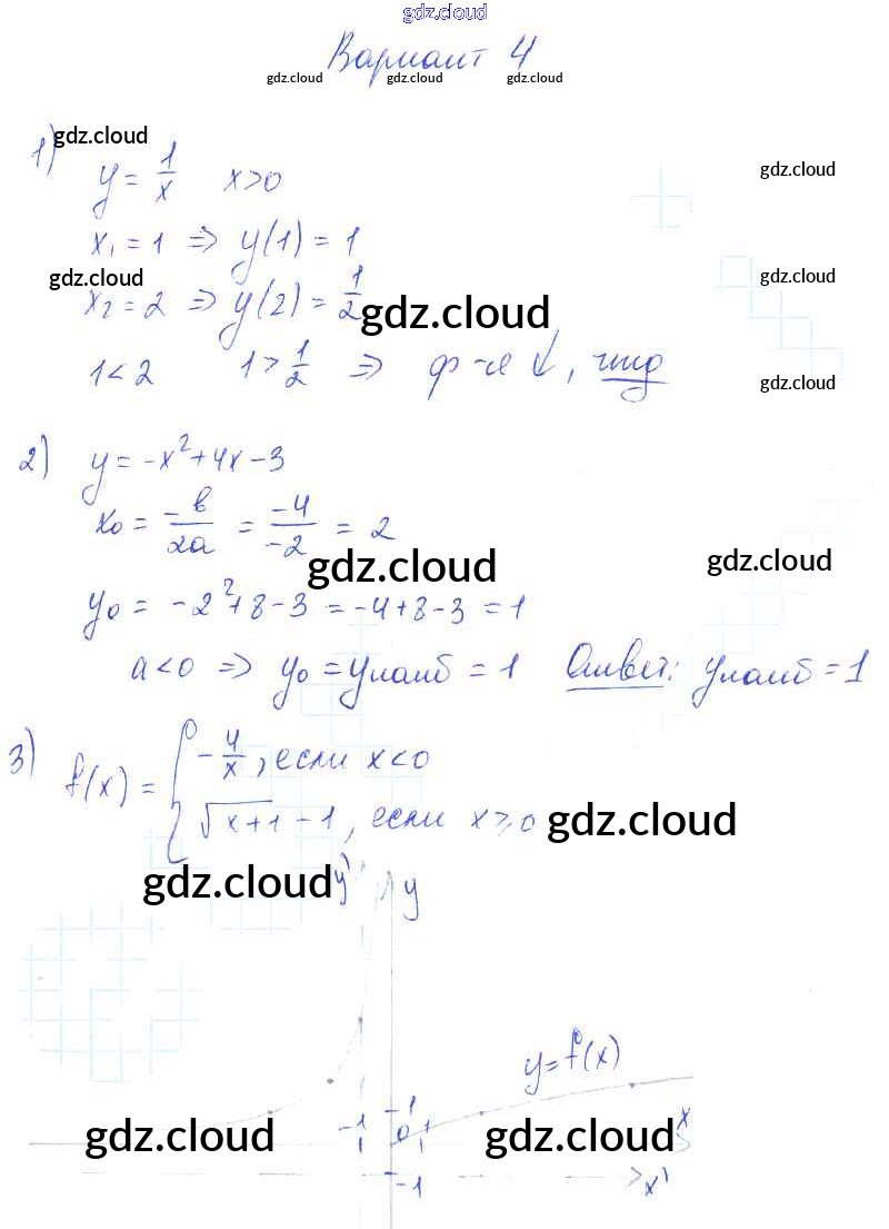 Ответ на задание вариант 4 Самостоятельные работы Алгебра за 9 (девятый) класс Александрова УМК Базовый уровень 2016