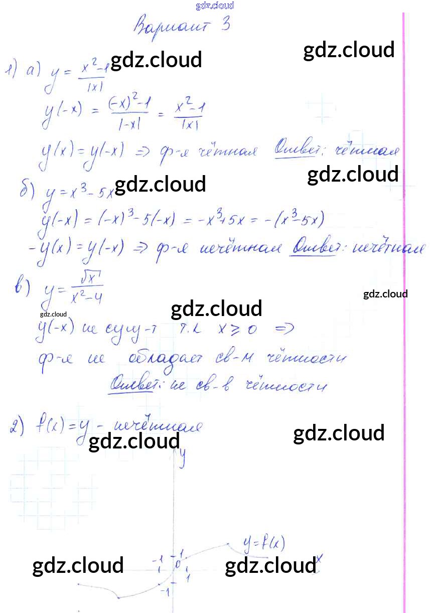 СР-14. Четные и нечетные функции Ответы к теме 3. Числовые функции по Алгебре 9 класс Самостоятельные работы Александрова УМК Базовый уровень Мнемозина