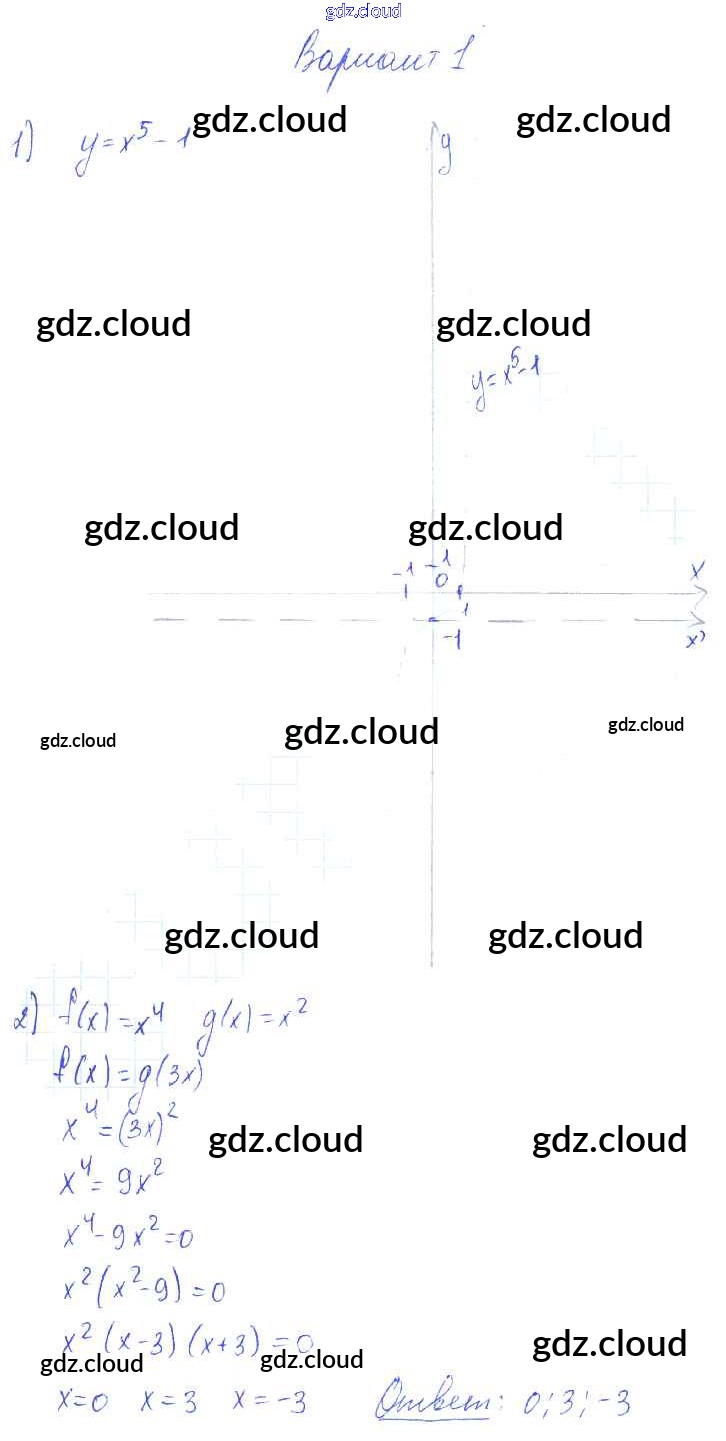 СР-16. Функции y=xn (n ∈ N) их свойства и графики Ответы к теме 3. Числовые функции по Алгебре 9 класс Самостоятельные работы Александрова УМК Базовый уровень Мнемозина