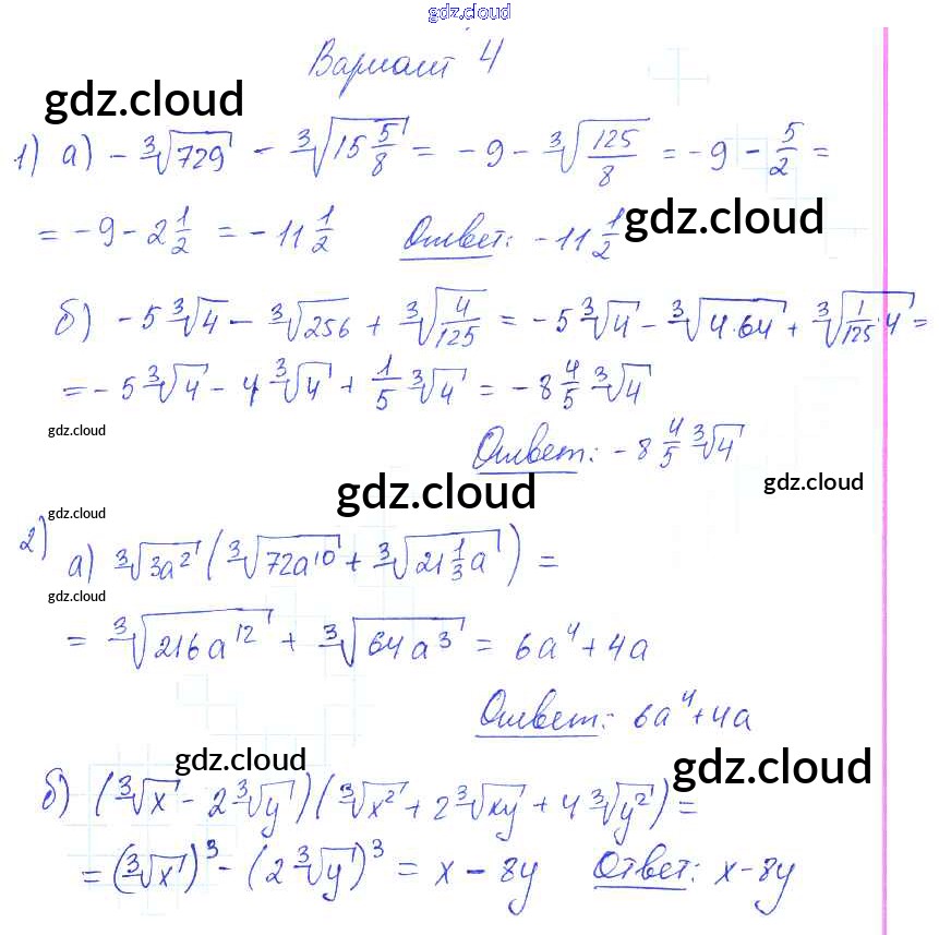 Ответ на задание вариант 4 Самостоятельные работы Алгебра за 9 (девятый) класс Александрова УМК Базовый уровень 2016