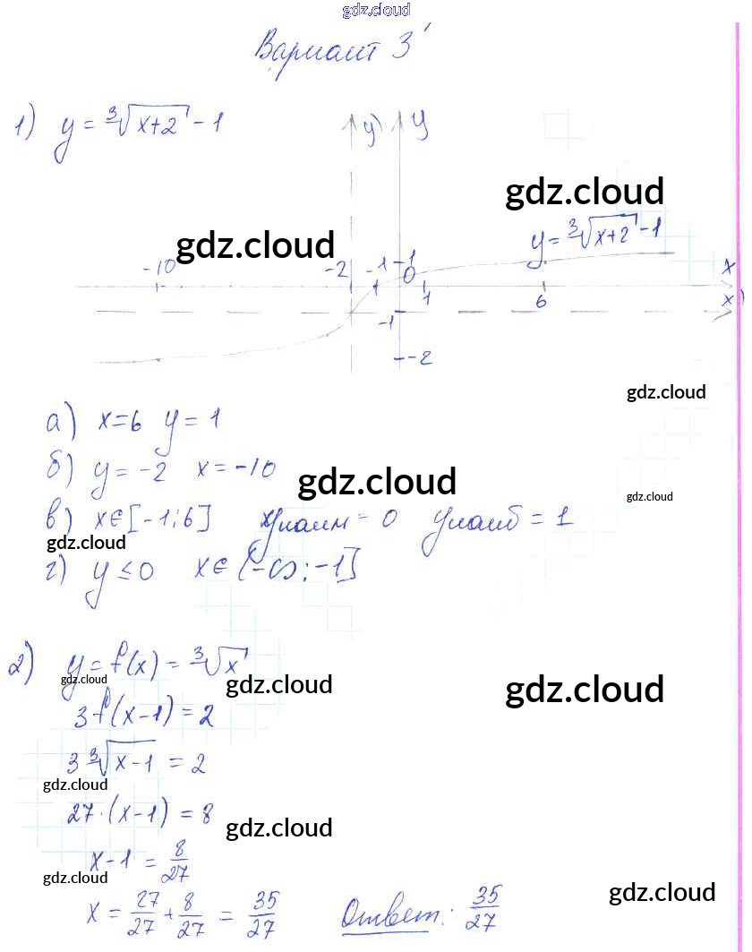 СР-19. Функции y=∛x ее свойства и график Ответы к теме 3. Числовые функции по Алгебре 9 класс Самостоятельные работы Александрова УМК Базовый уровень Мнемозина