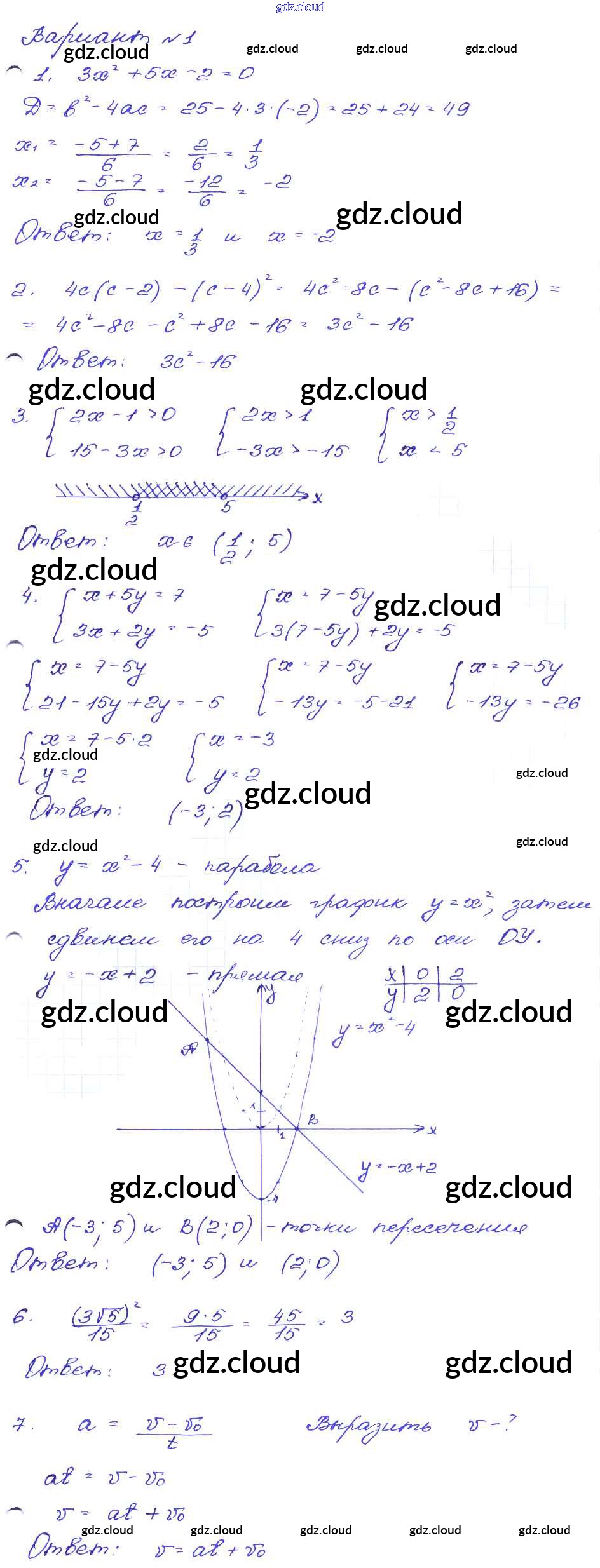 Ответ на задание Вариант-1 Сборник заданий Алгебра за 9 (девятый) класс Кузнецова, Бунимович, Пигарев, Суворова 2008