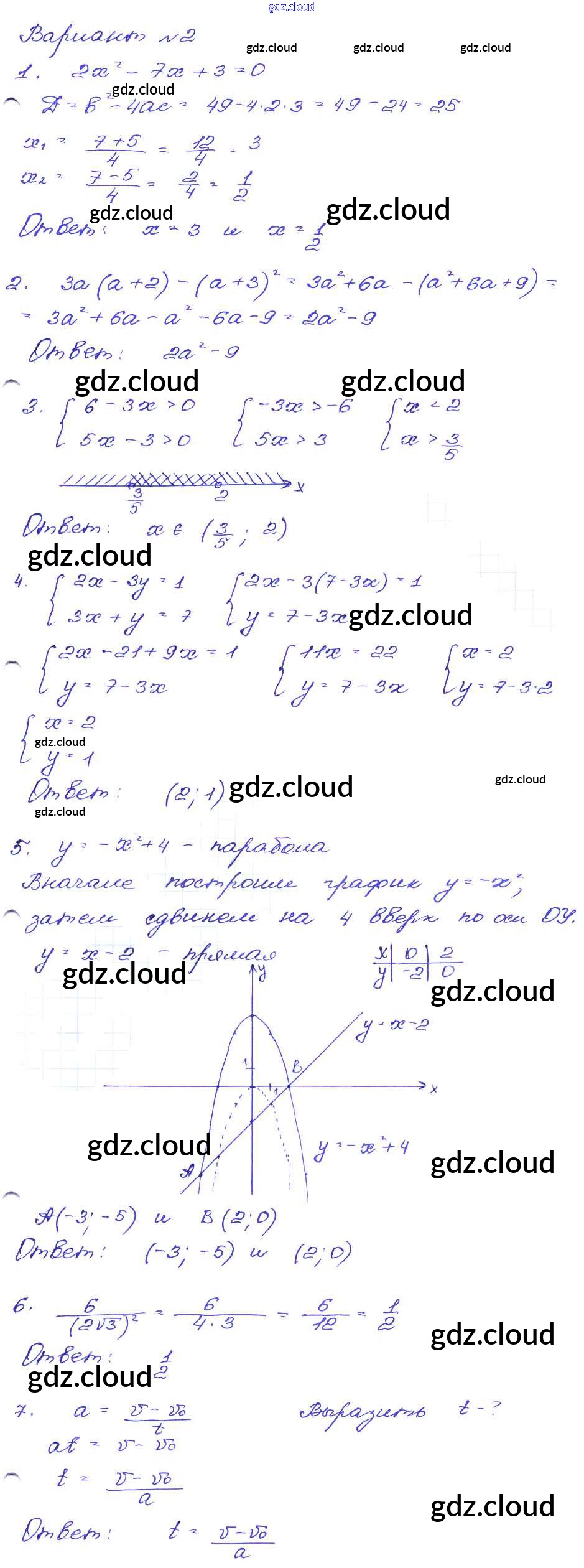 Ответ на задание Вариант-2 Сборник заданий Алгебра за 9 (девятый) класс Кузнецова, Бунимович, Пигарев, Суворова 2008