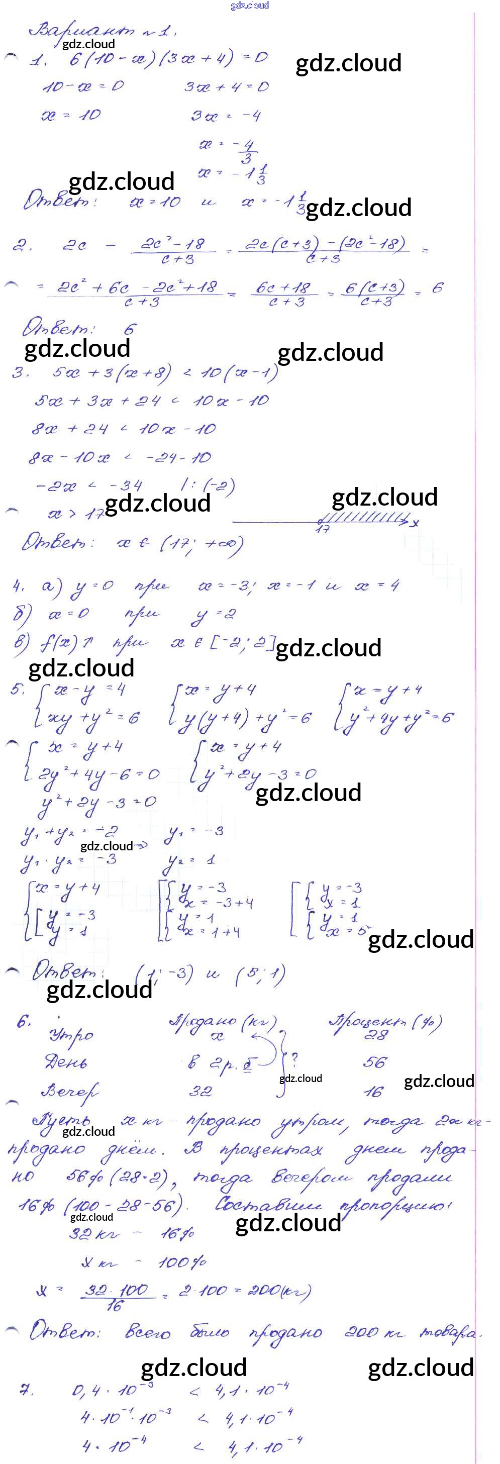 Ответ на задание Вариант-1 Сборник заданий Алгебра за 9 (девятый) класс Кузнецова, Бунимович, Пигарев, Суворова 2008
