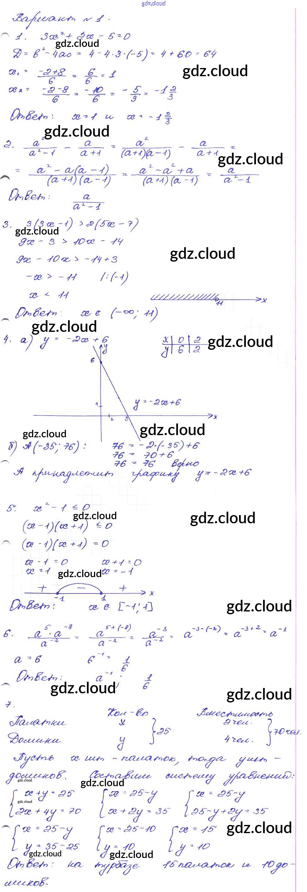Ответ на задание Вариант-1 Сборник заданий Алгебра за 9 (девятый) класс Кузнецова, Бунимович, Пигарев, Суворова 2008