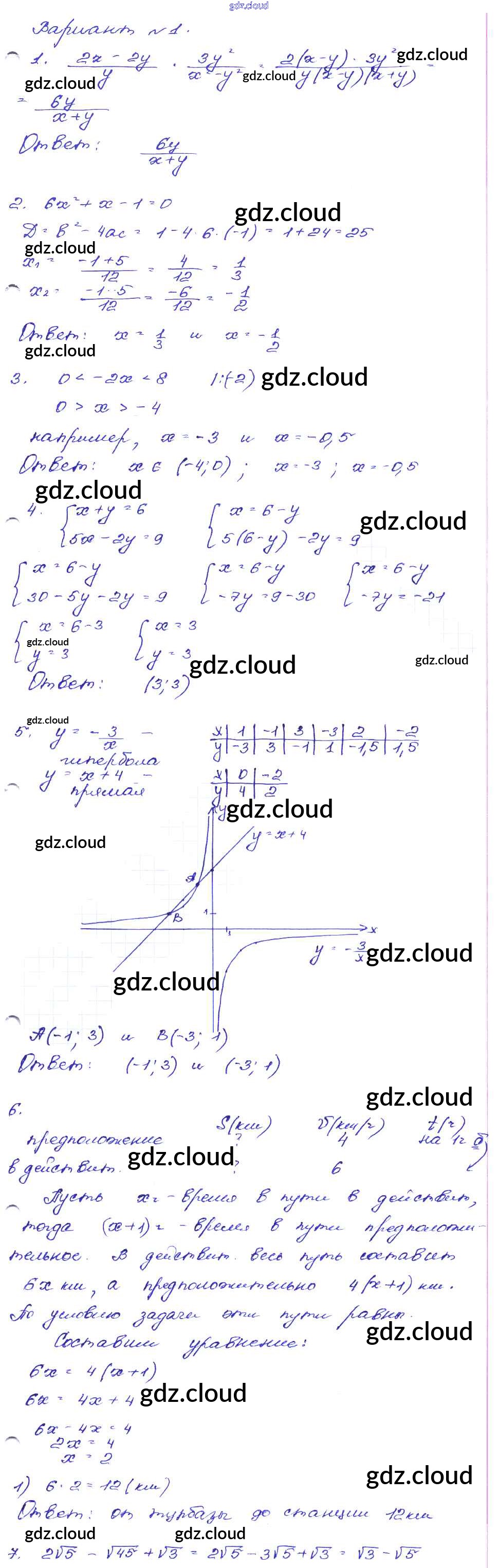 Ответ на задание Вариант-1 Сборник заданий Алгебра за 9 (девятый) класс Кузнецова, Бунимович, Пигарев, Суворова 2008