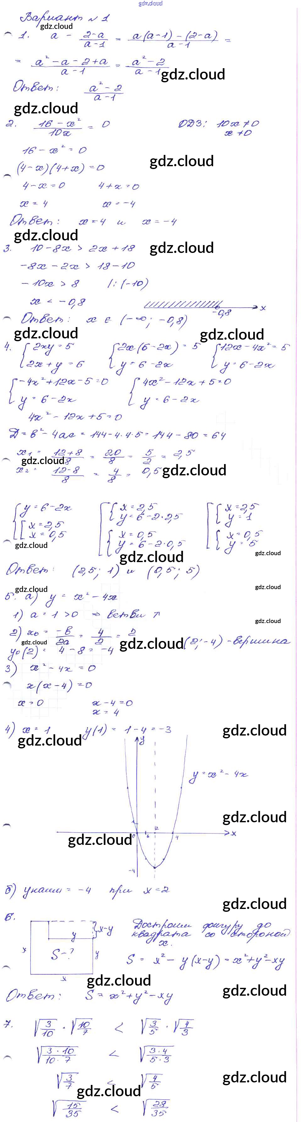 Ответ на задание Вариант-1 Сборник заданий Алгебра за 9 (девятый) класс Кузнецова, Бунимович, Пигарев, Суворова 2008