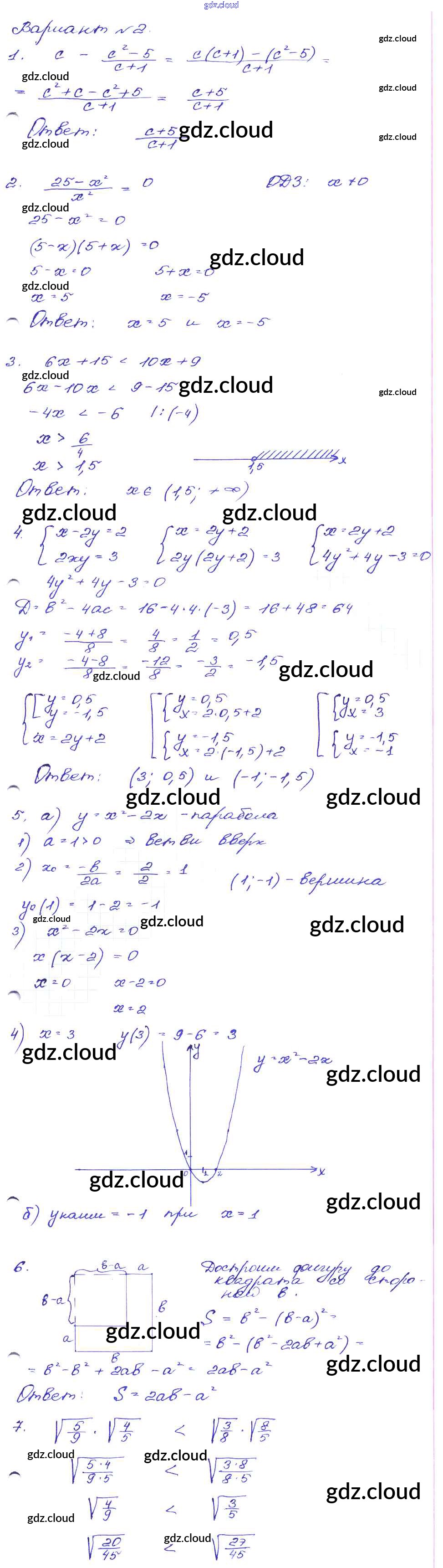 Ответ на задание Вариант-2 Сборник заданий Алгебра за 9 (девятый) класс Кузнецова, Бунимович, Пигарев, Суворова 2008
