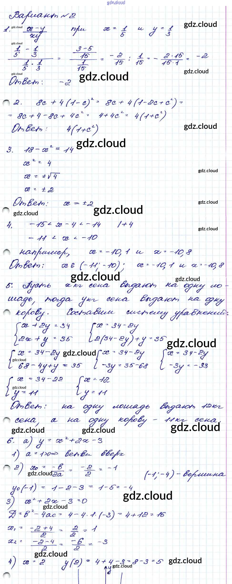 Ответ на задание Вариант-2 Сборник заданий Алгебра за 9 (девятый) класс Кузнецова, Бунимович, Пигарев, Суворова 2008