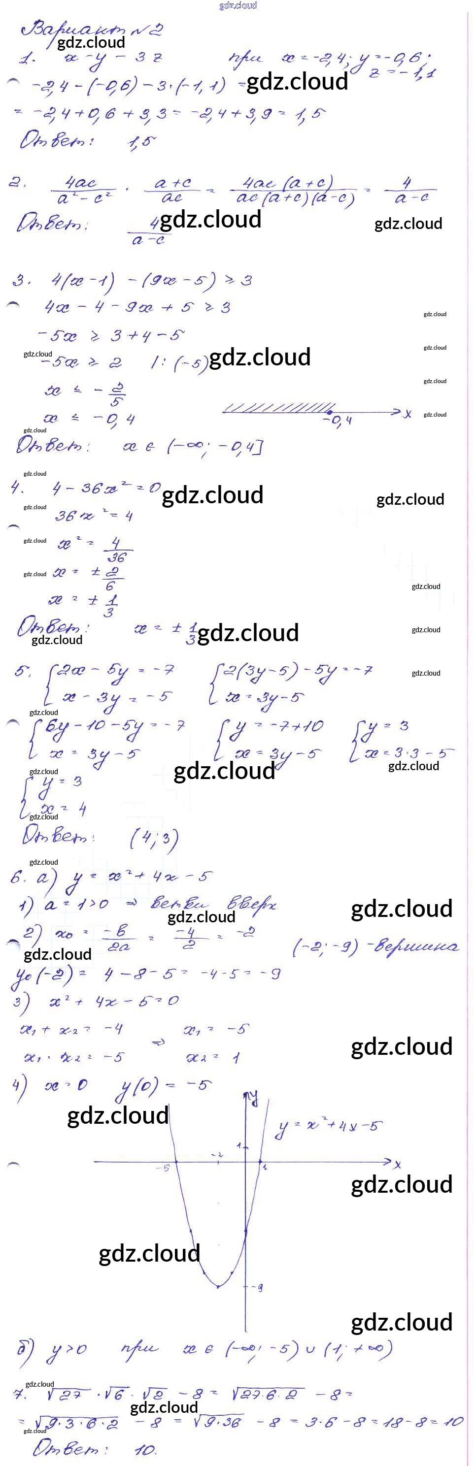 Ответ на задание Вариант-2 Сборник заданий Алгебра за 9 (девятый) класс Кузнецова, Бунимович, Пигарев, Суворова 2008