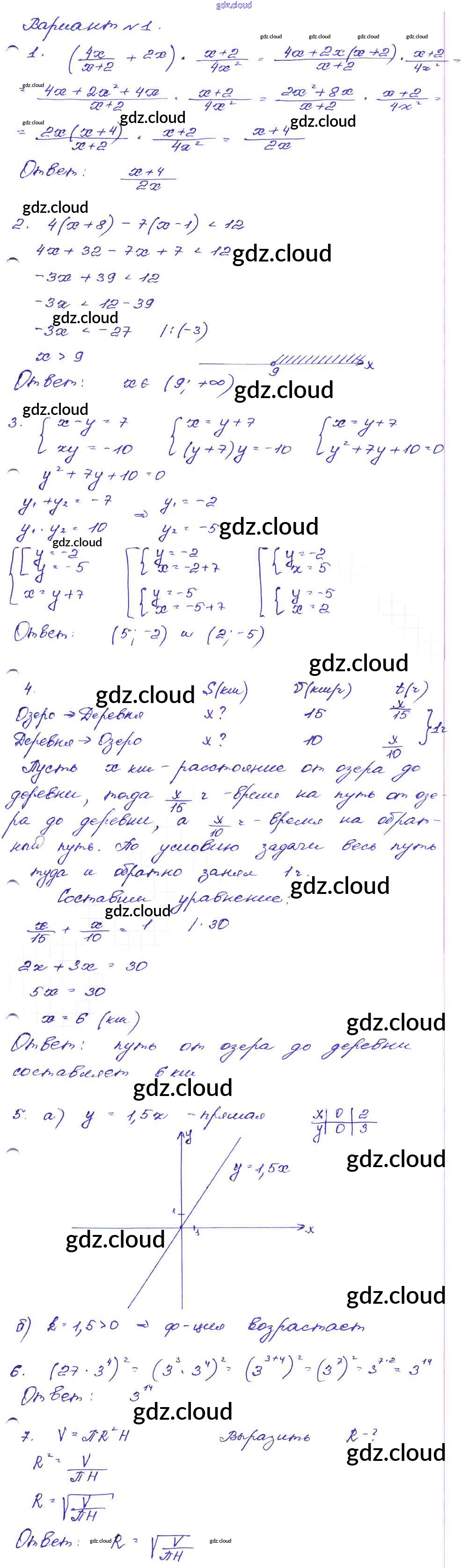 Ответ на задание Вариант-1 Сборник заданий Алгебра за 9 (девятый) класс Кузнецова, Бунимович, Пигарев, Суворова 2008