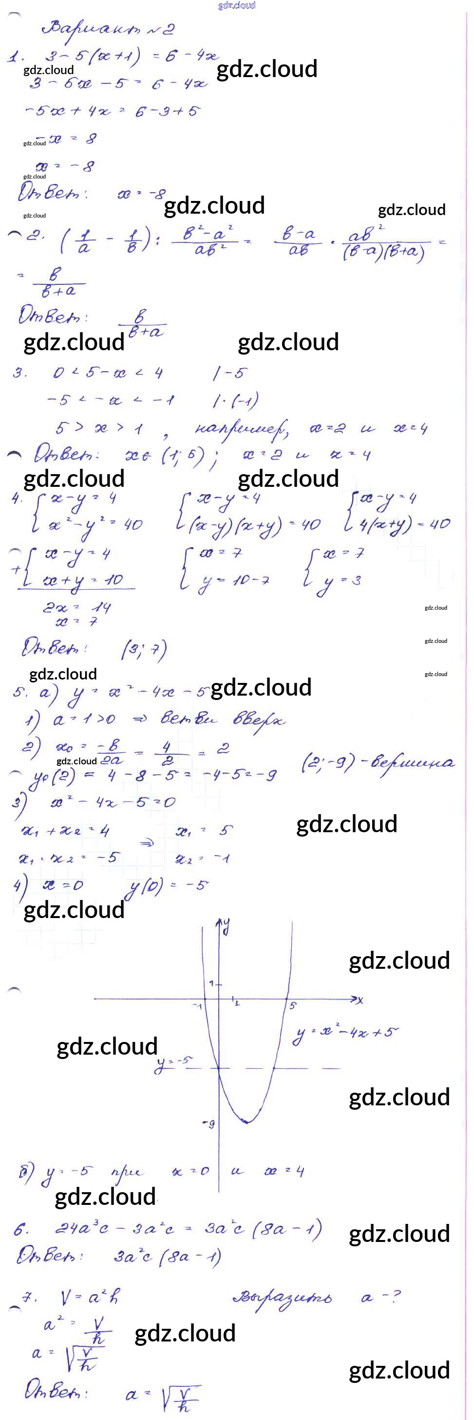 Ответ на задание Вариант-2 Сборник заданий Алгебра за 9 (девятый) класс Кузнецова, Бунимович, Пигарев, Суворова 2008