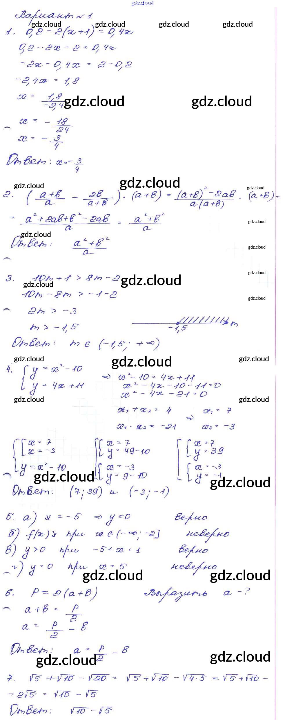 Ответ на задание Вариант-1 Сборник заданий Алгебра за 9 (девятый) класс Кузнецова, Бунимович, Пигарев, Суворова 2008