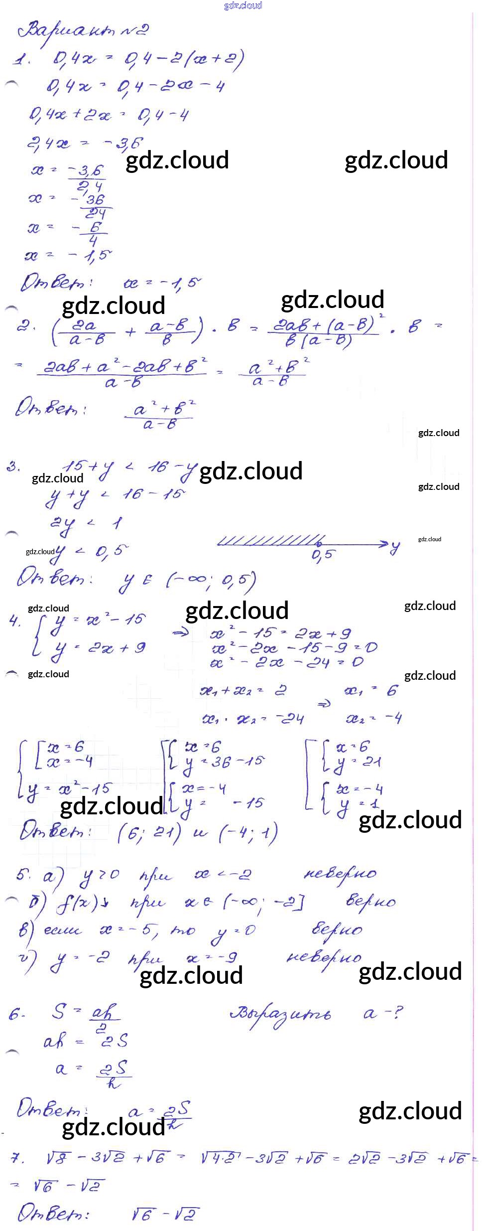 Ответ на задание Вариант-2 Сборник заданий Алгебра за 9 (девятый) класс Кузнецова, Бунимович, Пигарев, Суворова 2008