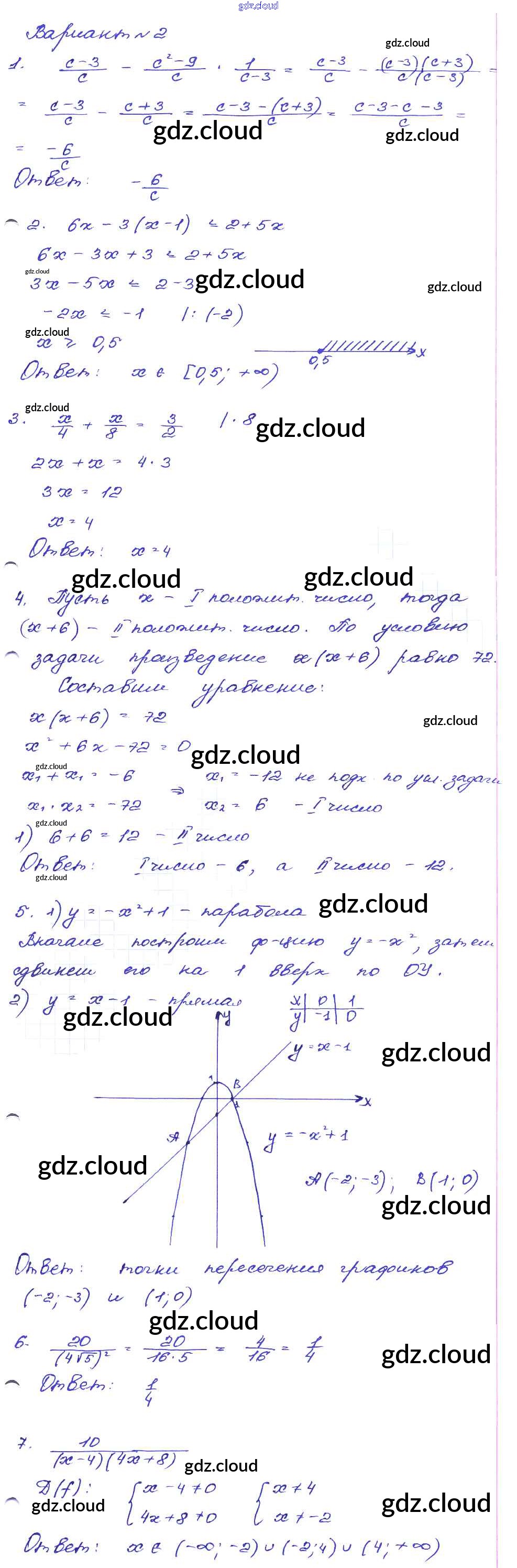 Ответ на задание Вариант-2 Сборник заданий Алгебра за 9 (девятый) класс Кузнецова, Бунимович, Пигарев, Суворова 2008