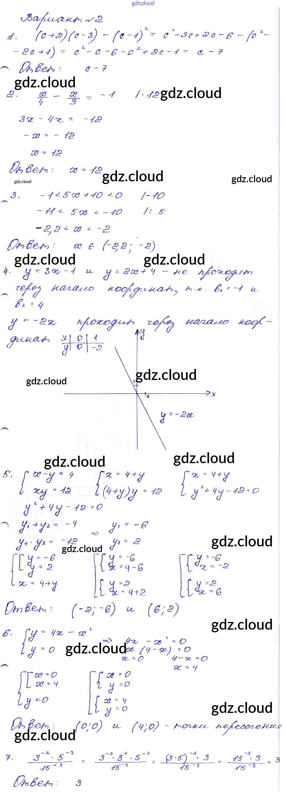 Ответ на задание Вариант-2 Сборник заданий Алгебра за 9 (девятый) класс Кузнецова, Бунимович, Пигарев, Суворова 2008