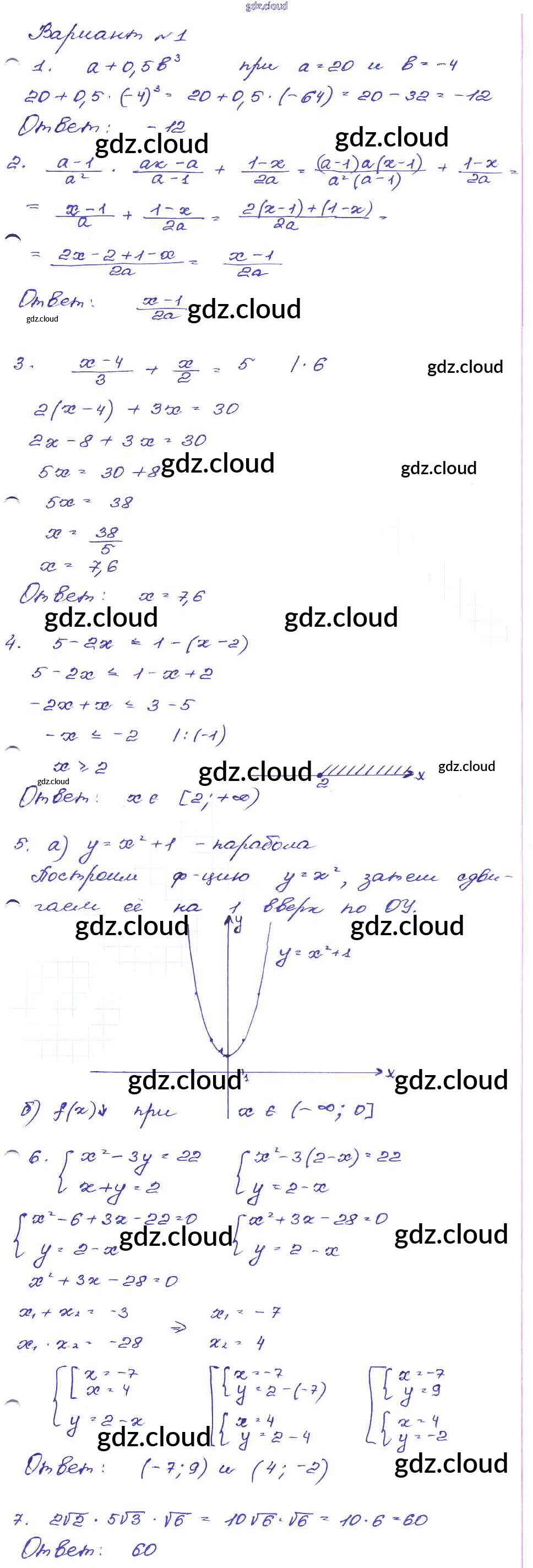 Ответ на задание Вариант-1 Сборник заданий Алгебра за 9 (девятый) класс Кузнецова, Бунимович, Пигарев, Суворова 2008