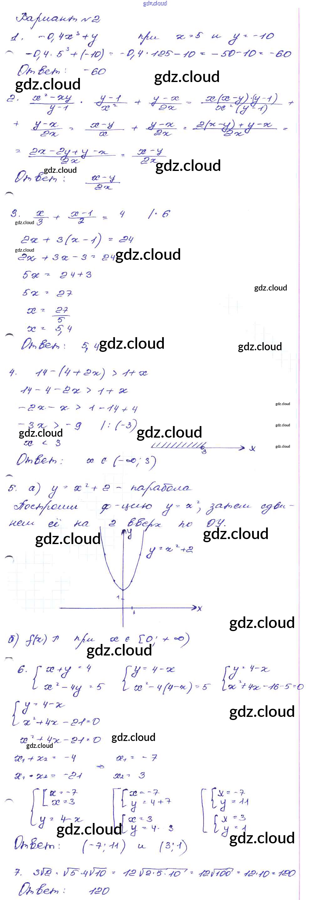 Ответ на задание Вариант-2 Сборник заданий Алгебра за 9 (девятый) класс Кузнецова, Бунимович, Пигарев, Суворова 2008