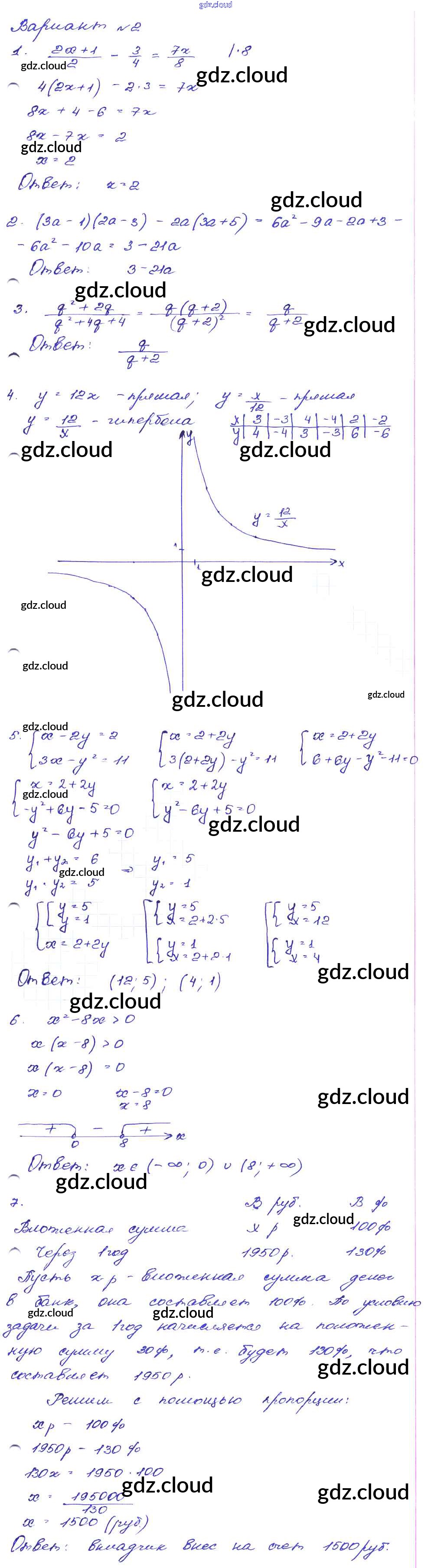 Ответ на задание Вариант-2 Сборник заданий Алгебра за 9 (девятый) класс Кузнецова, Бунимович, Пигарев, Суворова 2008