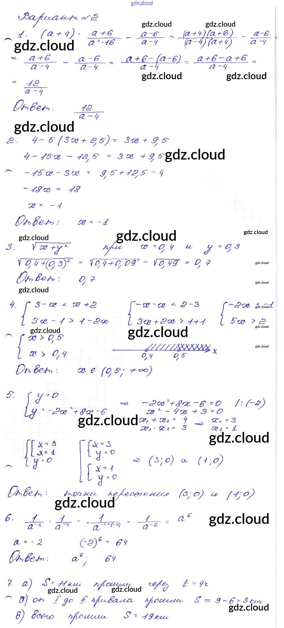 Ответ на задание Вариант-2 Сборник заданий Алгебра за 9 (девятый) класс Кузнецова, Бунимович, Пигарев, Суворова 2008