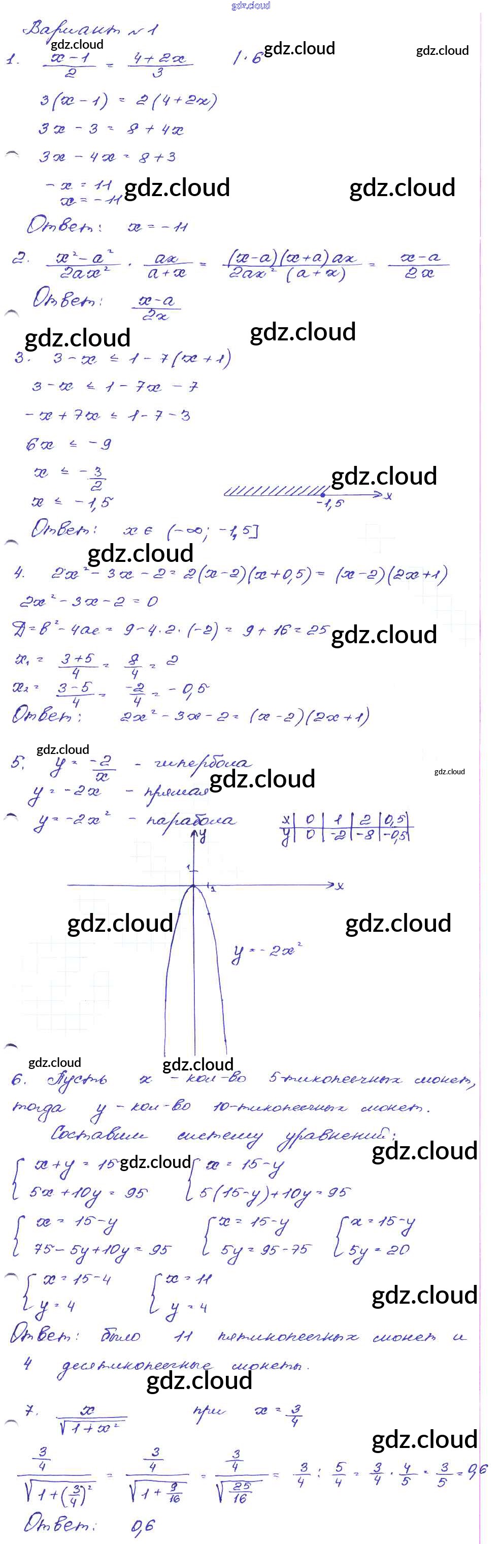 Ответ на задание Вариант-1 Сборник заданий Алгебра за 9 (девятый) класс Кузнецова, Бунимович, Пигарев, Суворова 2008