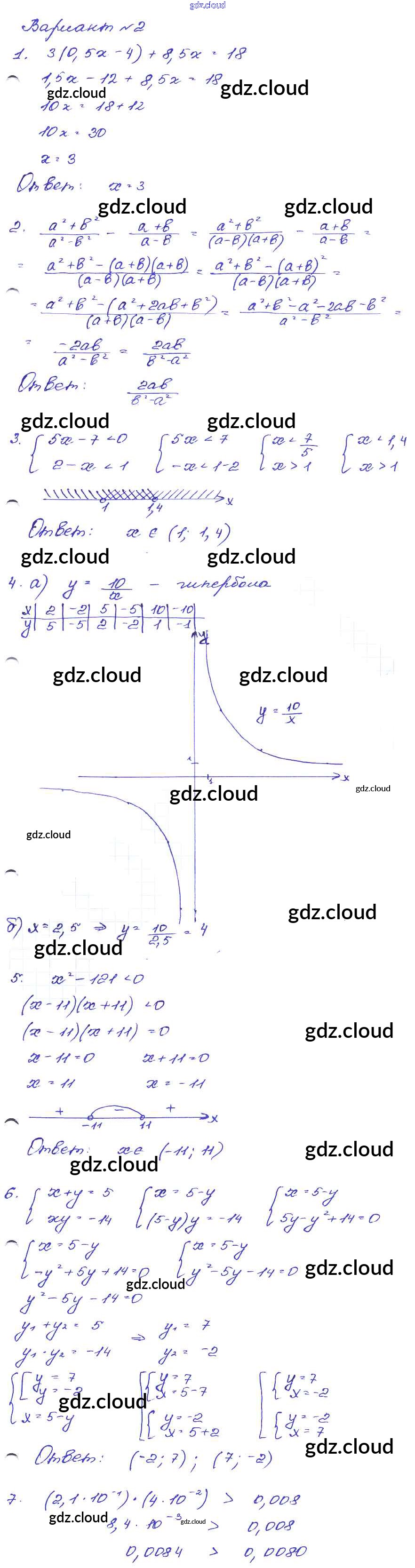 Ответ на задание Вариант-2 Сборник заданий Алгебра за 9 (девятый) класс Кузнецова, Бунимович, Пигарев, Суворова 2008