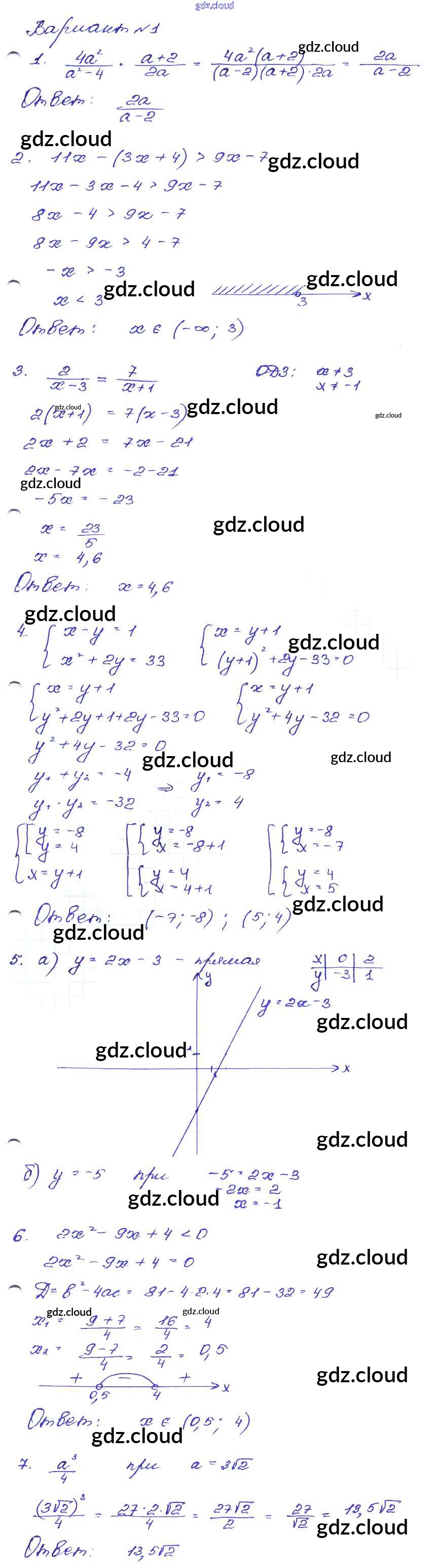 Ответ на задание Вариант-1 Сборник заданий Алгебра за 9 (девятый) класс Кузнецова, Бунимович, Пигарев, Суворова 2008