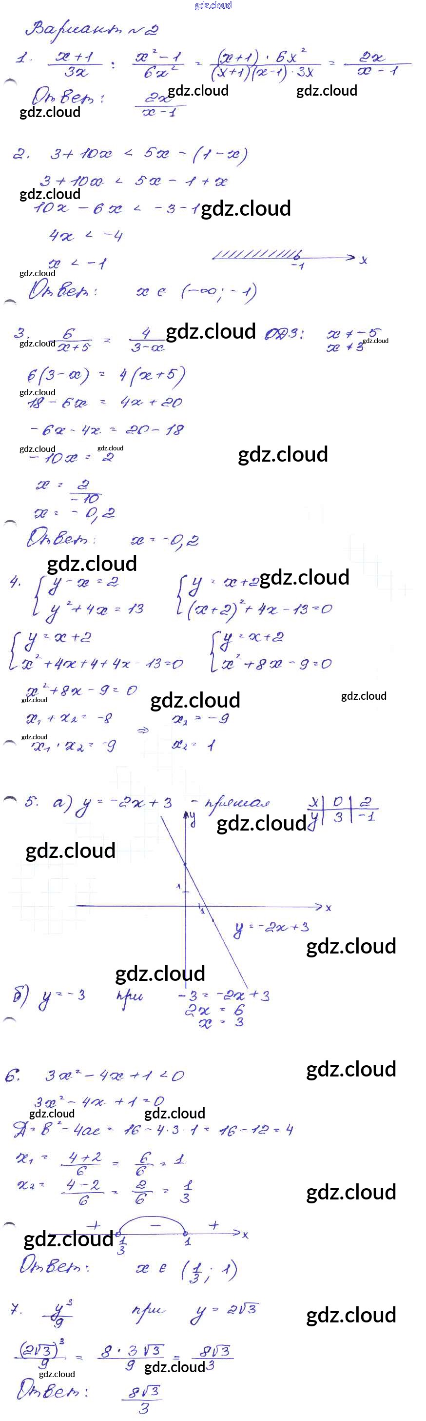 Ответ на задание Вариант-2 Сборник заданий Алгебра за 9 (девятый) класс Кузнецова, Бунимович, Пигарев, Суворова 2008