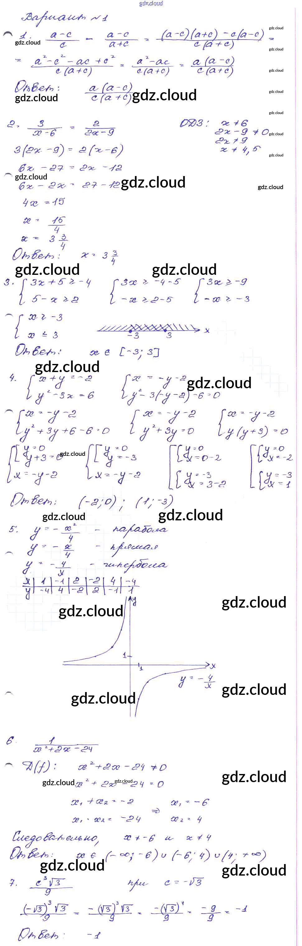 Ответ на задание Вариант-1 Сборник заданий Алгебра за 9 (девятый) класс Кузнецова, Бунимович, Пигарев, Суворова 2008