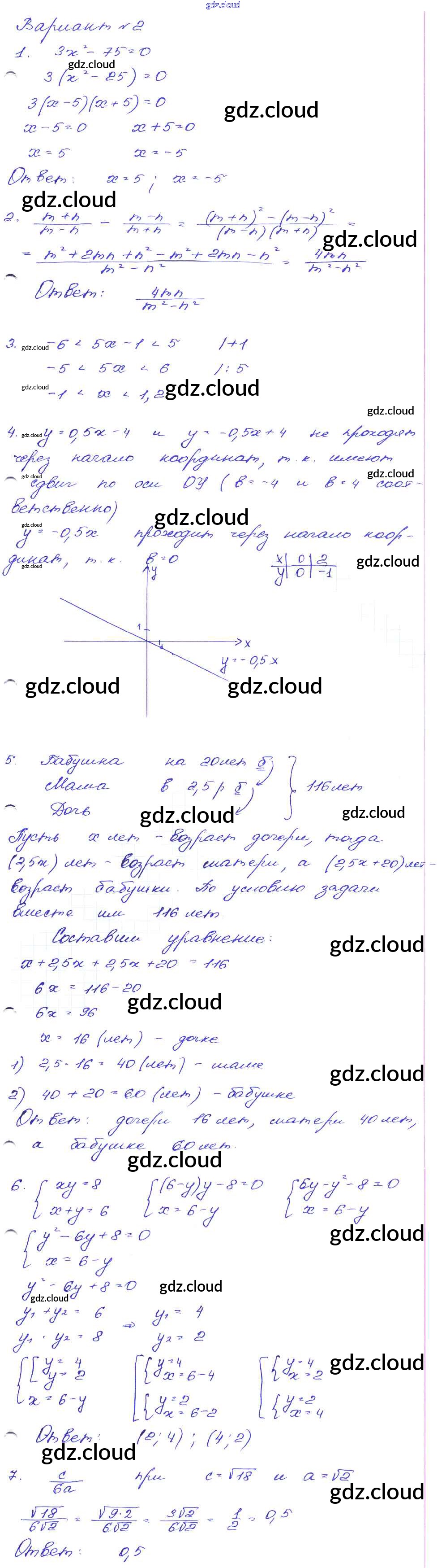 Ответ на задание Вариант-2 Сборник заданий Алгебра за 9 (девятый) класс Кузнецова, Бунимович, Пигарев, Суворова 2008