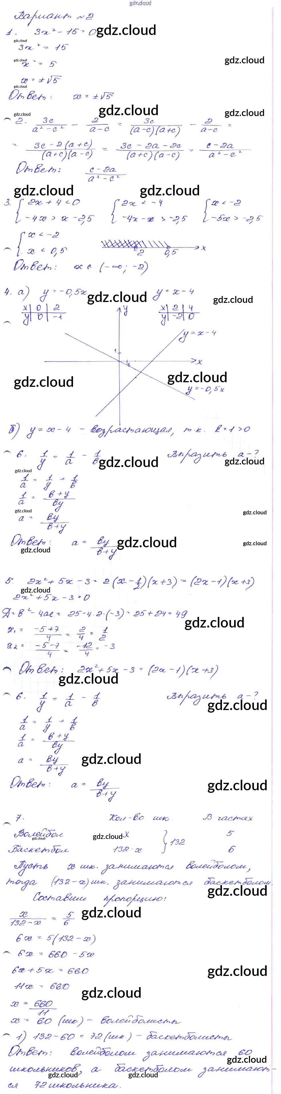 Ответ на задание Вариант-2 Сборник заданий Алгебра за 9 (девятый) класс Кузнецова, Бунимович, Пигарев, Суворова 2008