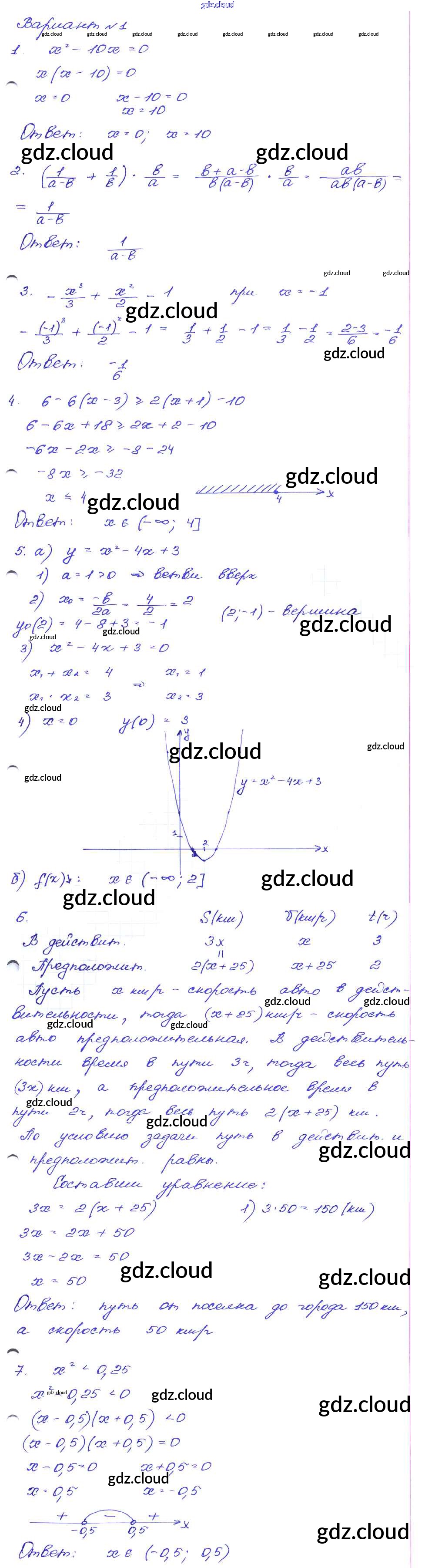 Ответ на задание Вариант-1 Сборник заданий Алгебра за 9 (девятый) класс Кузнецова, Бунимович, Пигарев, Суворова 2008