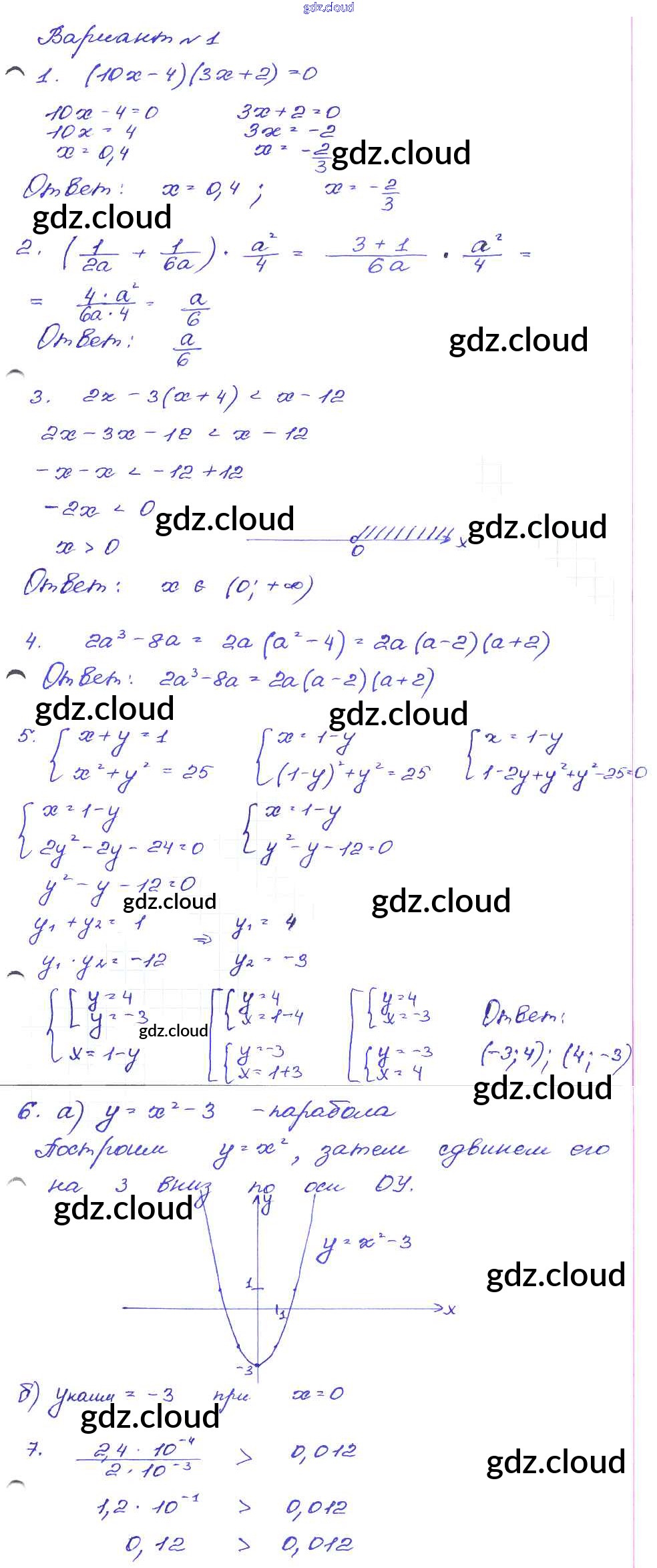 Ответ на задание Вариант-1 Сборник заданий Алгебра за 9 (девятый) класс Кузнецова, Бунимович, Пигарев, Суворова 2008
