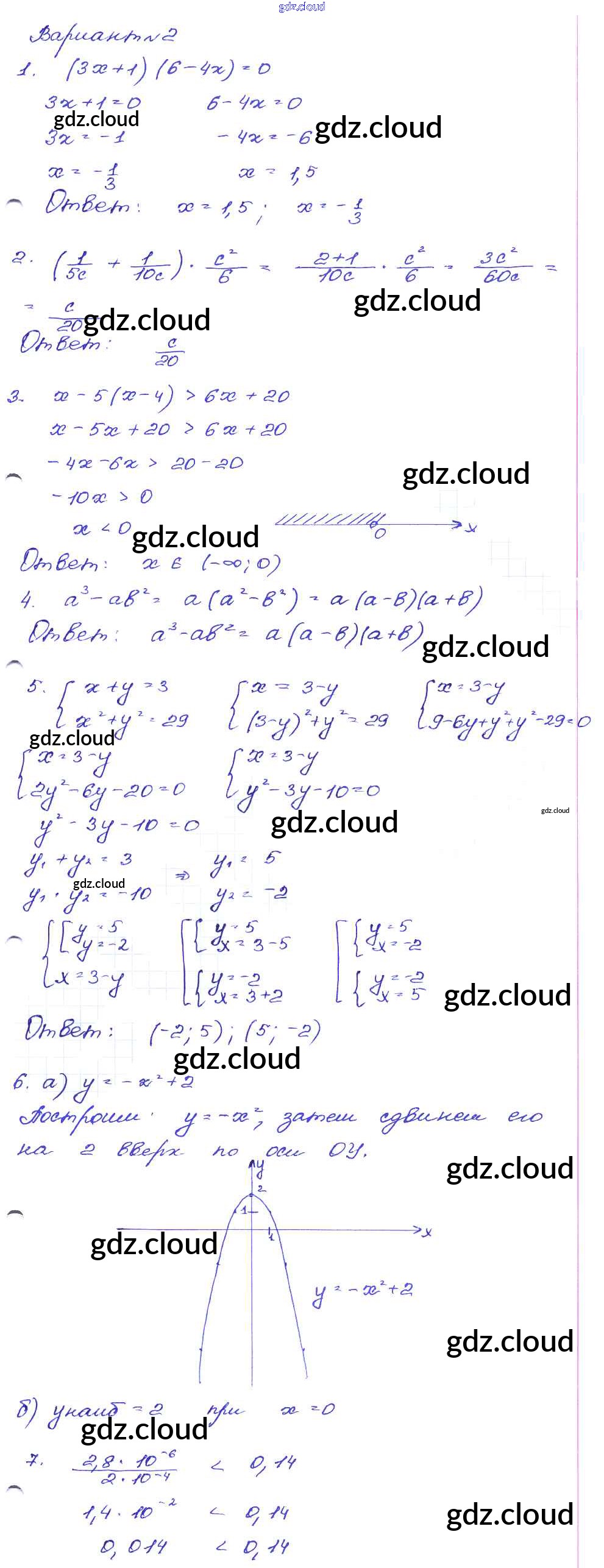 Ответ на задание Вариант-2 Сборник заданий Алгебра за 9 (девятый) класс Кузнецова, Бунимович, Пигарев, Суворова 2008