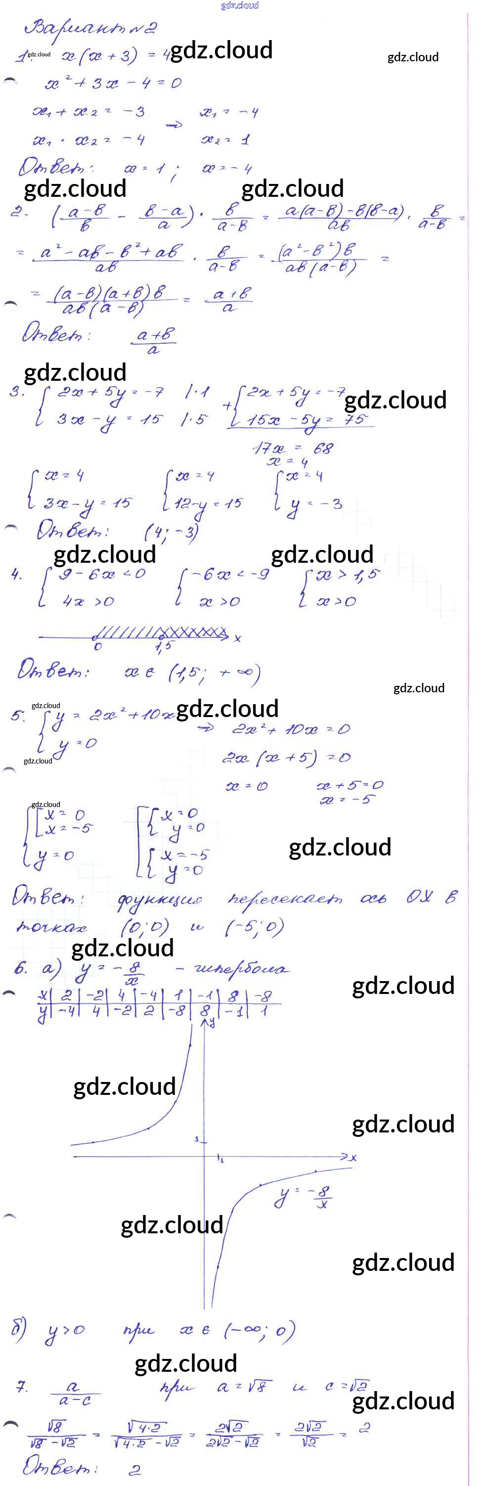 Ответ на задание Вариант-2 Сборник заданий Алгебра за 9 (девятый) класс Кузнецова, Бунимович, Пигарев, Суворова 2008