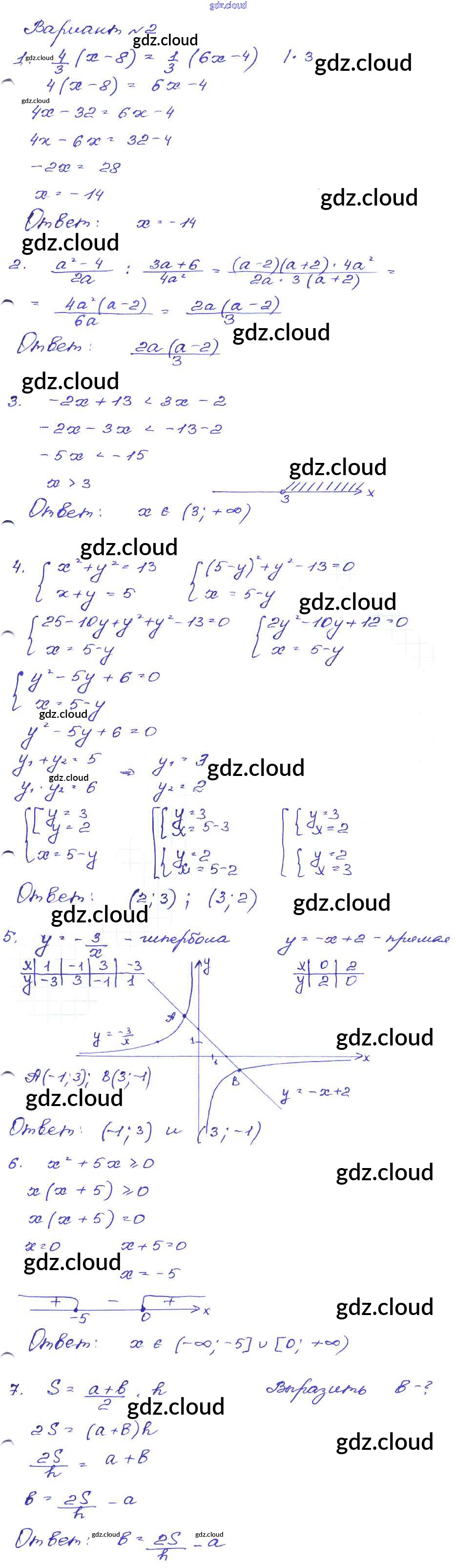 Ответ на задание Вариант-2 Сборник заданий Алгебра за 9 (девятый) класс Кузнецова, Бунимович, Пигарев, Суворова 2008