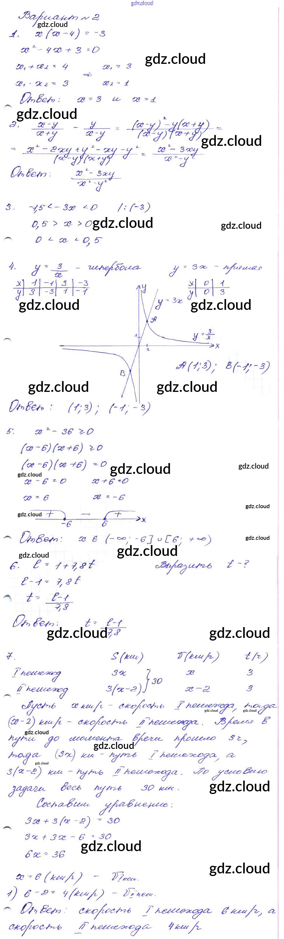 Ответ на задание Вариант-2 Сборник заданий Алгебра за 9 (девятый) класс Кузнецова, Бунимович, Пигарев, Суворова 2008
