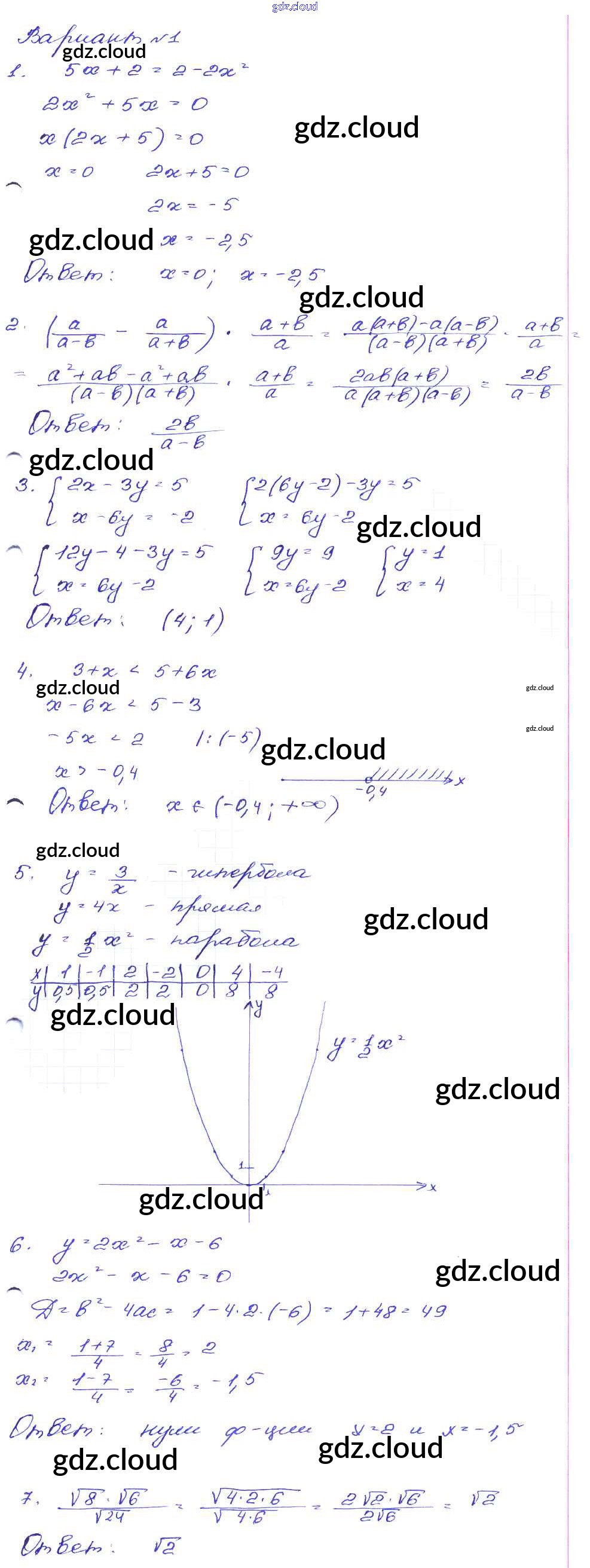 Ответ на задание Вариант-1 Сборник заданий Алгебра за 9 (девятый) класс Кузнецова, Бунимович, Пигарев, Суворова 2008