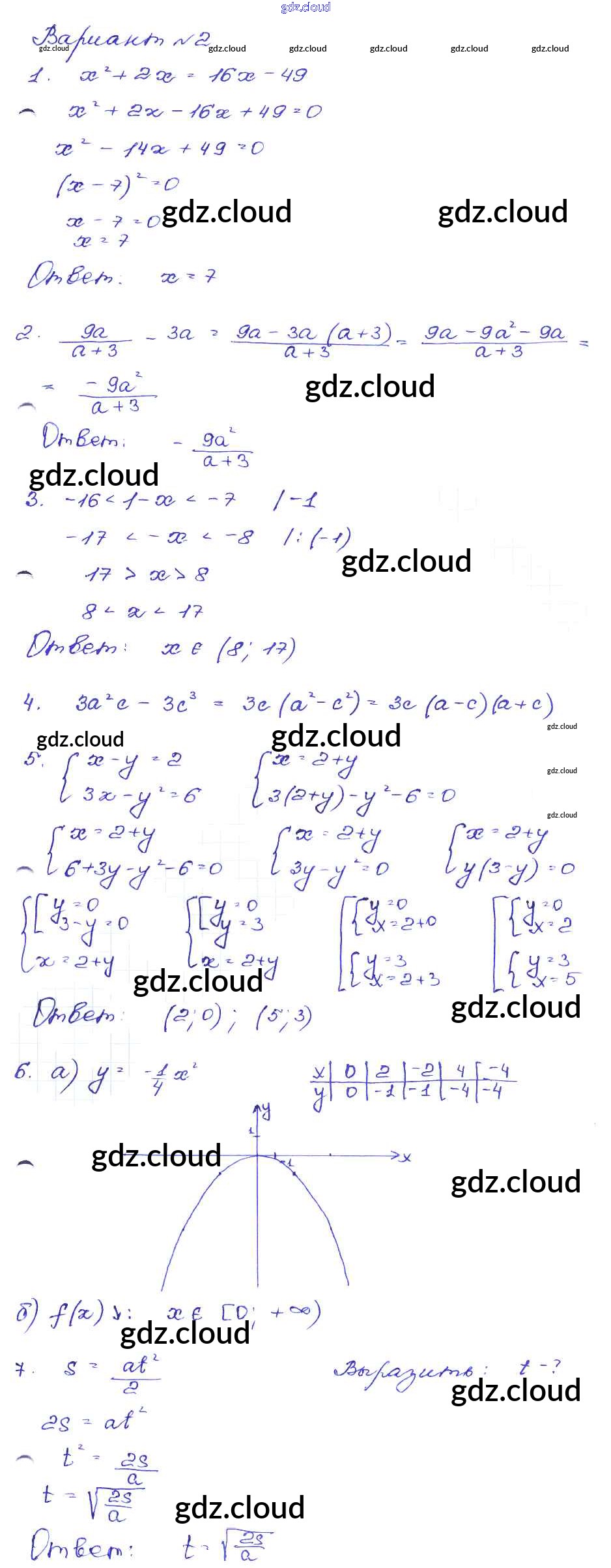 Ответ на задание Вариант-2 Сборник заданий Алгебра за 9 (девятый) класс Кузнецова, Бунимович, Пигарев, Суворова 2008