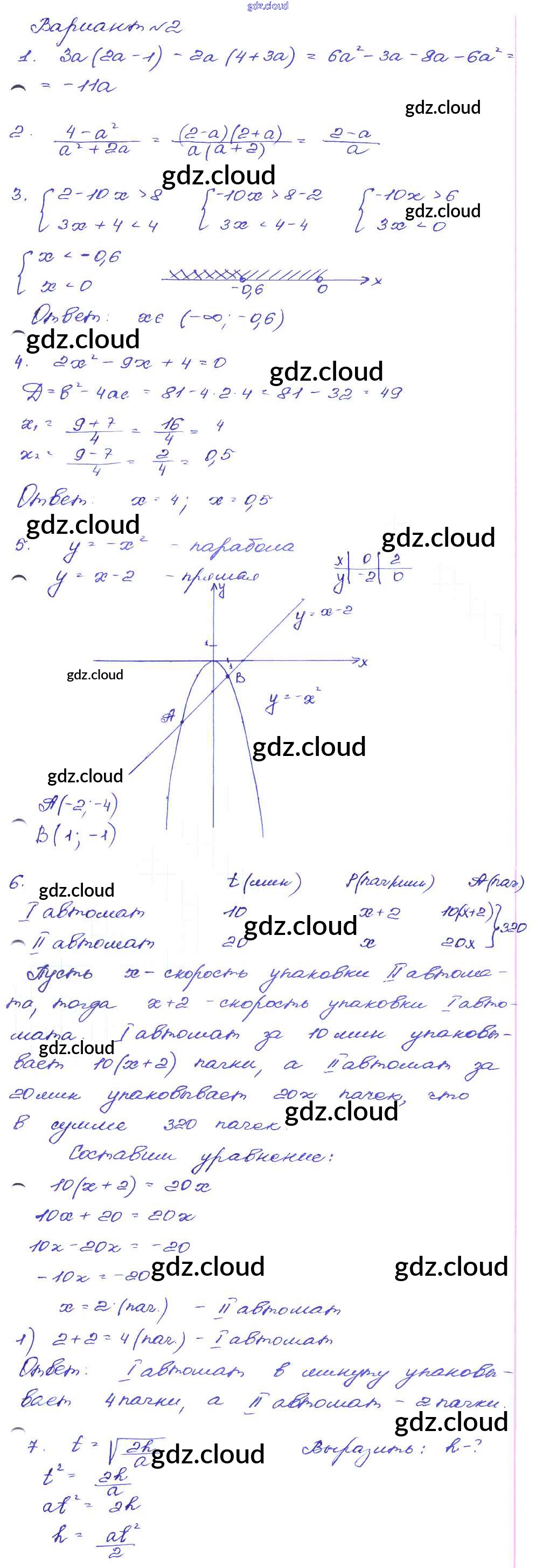 Ответ на задание Вариант-2 Сборник заданий Алгебра за 9 (девятый) класс Кузнецова, Бунимович, Пигарев, Суворова 2008