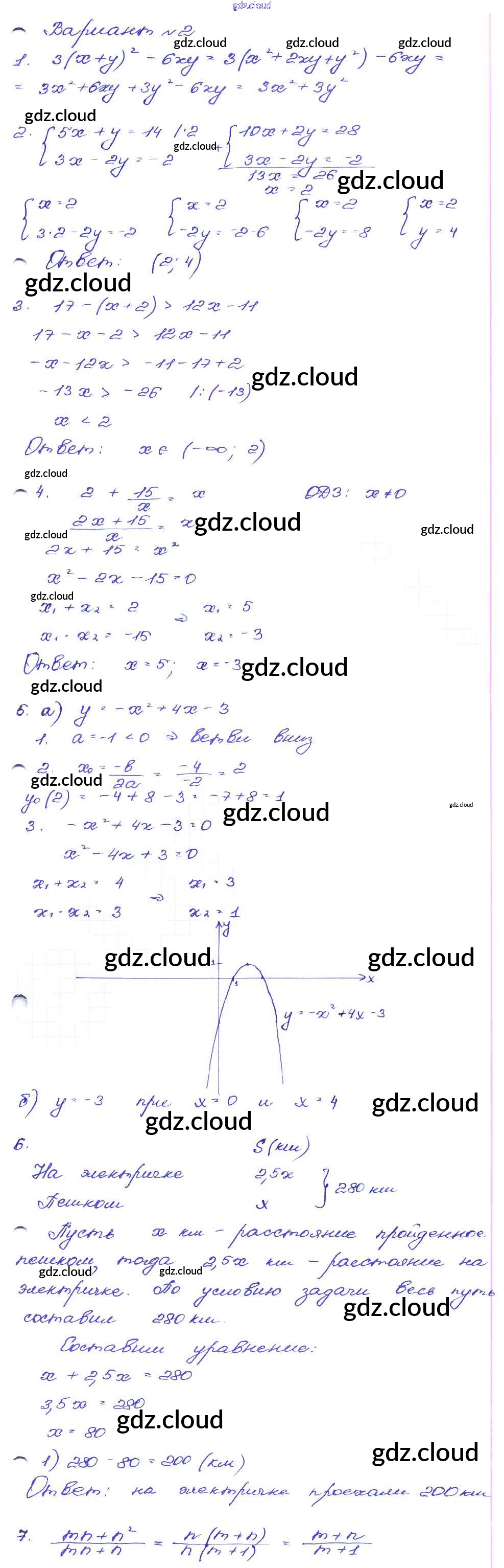 Ответ на задание Вариант-2 Сборник заданий Алгебра за 9 (девятый) класс Кузнецова, Бунимович, Пигарев, Суворова 2008