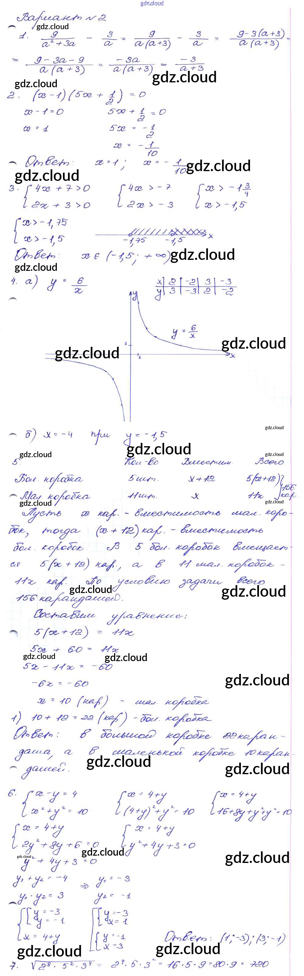 Ответ на задание Вариант-2 Сборник заданий Алгебра за 9 (девятый) класс Кузнецова, Бунимович, Пигарев, Суворова 2008