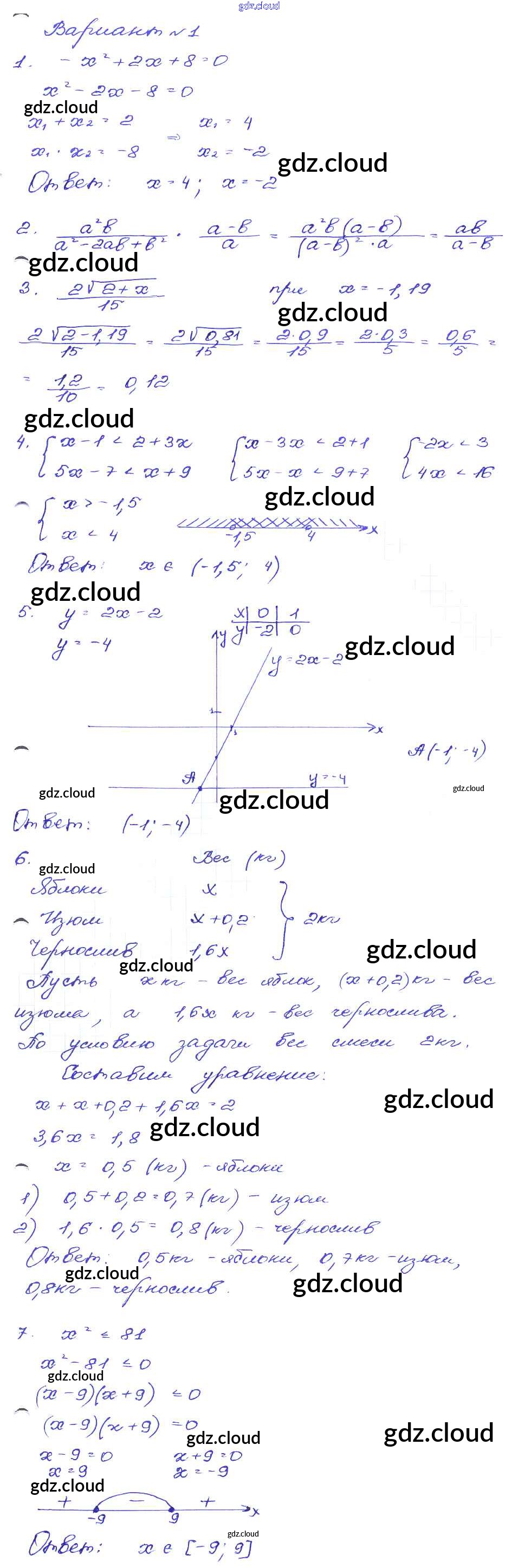 Ответ на задание Вариант-1 Сборник заданий Алгебра за 9 (девятый) класс Кузнецова, Бунимович, Пигарев, Суворова 2008