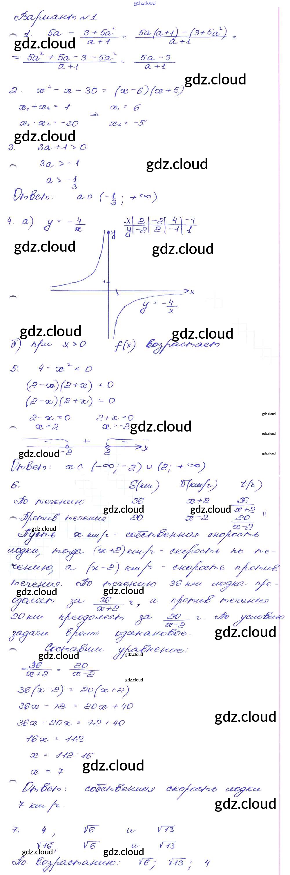 Ответ на задание Вариант-1 Сборник заданий Алгебра за 9 (девятый) класс Кузнецова, Бунимович, Пигарев, Суворова 2008