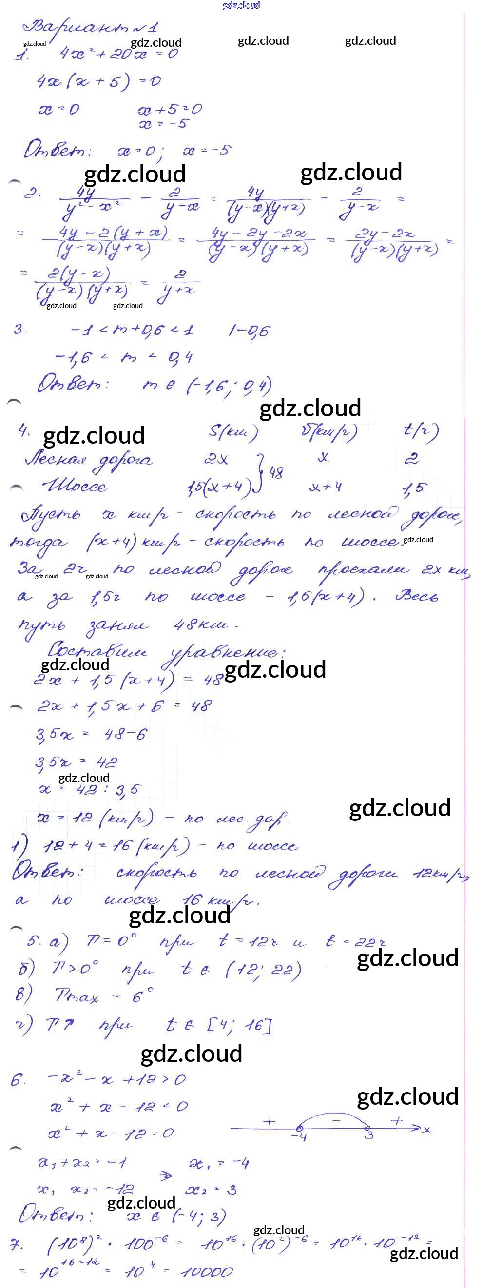 Ответ на задание Вариант-1 Сборник заданий Алгебра за 9 (девятый) класс Кузнецова, Бунимович, Пигарев, Суворова 2008