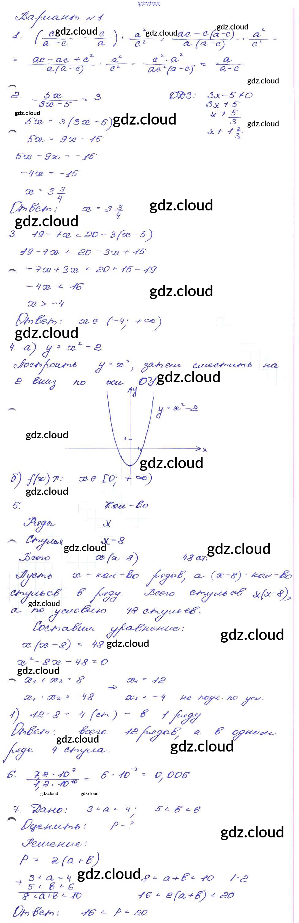 Ответ на задание Вариант-1 Сборник заданий Алгебра за 9 (девятый) класс Кузнецова, Бунимович, Пигарев, Суворова 2008