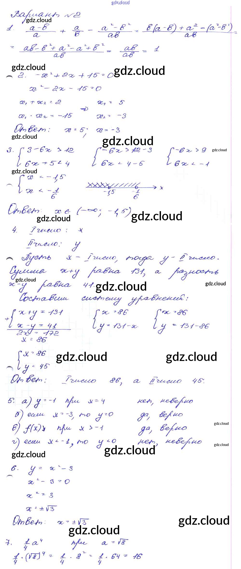 Ответ на задание Вариант-2 Сборник заданий Алгебра за 9 (девятый) класс Кузнецова, Бунимович, Пигарев, Суворова 2008