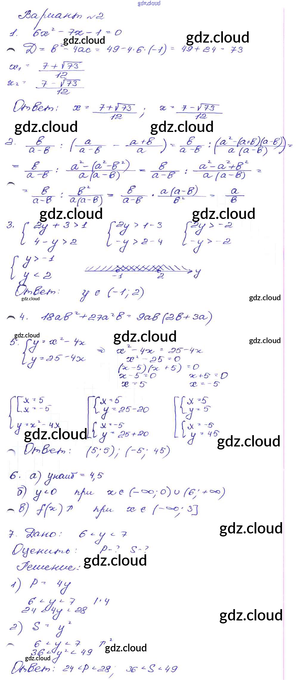 Ответ на задание Вариант-2 Сборник заданий Алгебра за 9 (девятый) класс Кузнецова, Бунимович, Пигарев, Суворова 2008