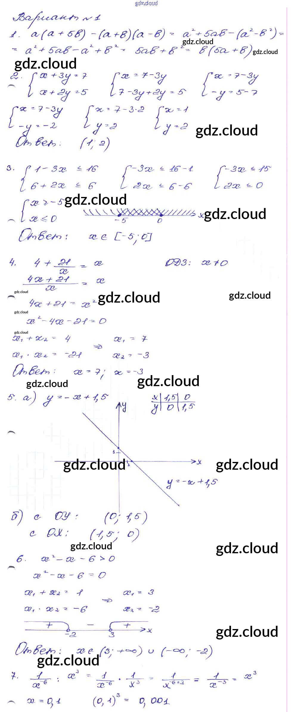 Ответ на задание Вариант-1 Сборник заданий Алгебра за 9 (девятый) класс Кузнецова, Бунимович, Пигарев, Суворова 2008