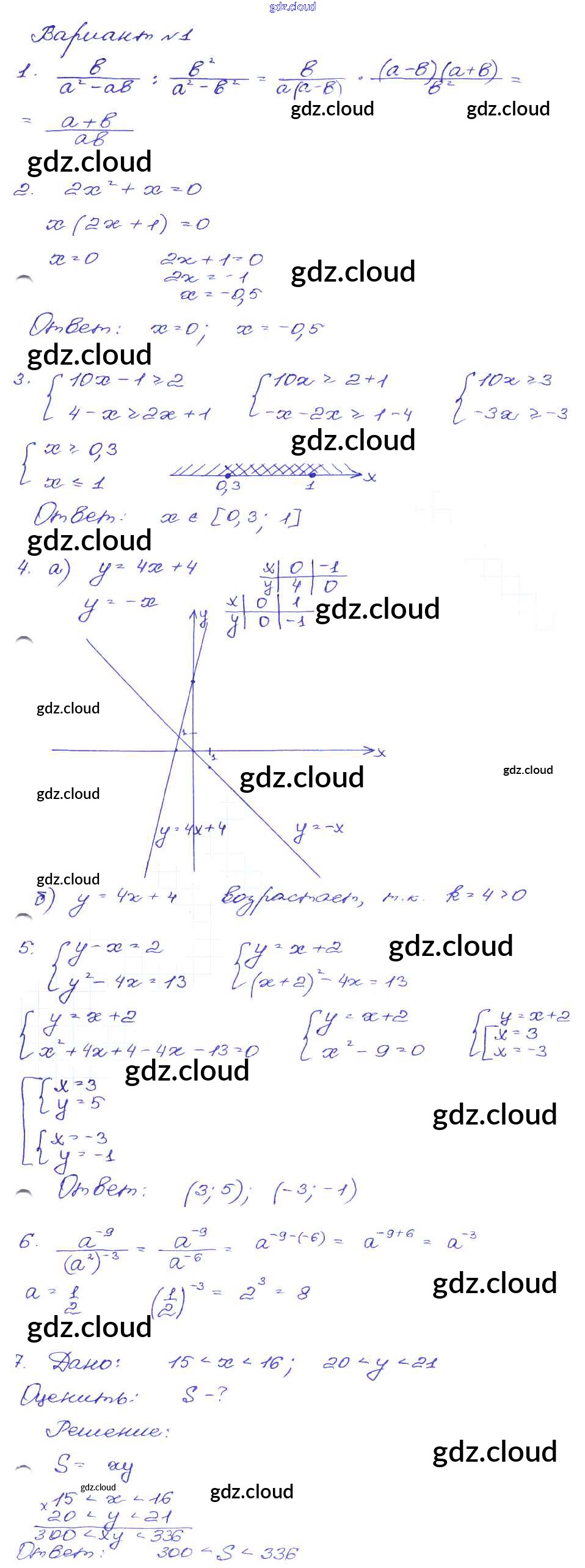 Ответ на задание Вариант-1 Сборник заданий Алгебра за 9 (девятый) класс Кузнецова, Бунимович, Пигарев, Суворова 2008